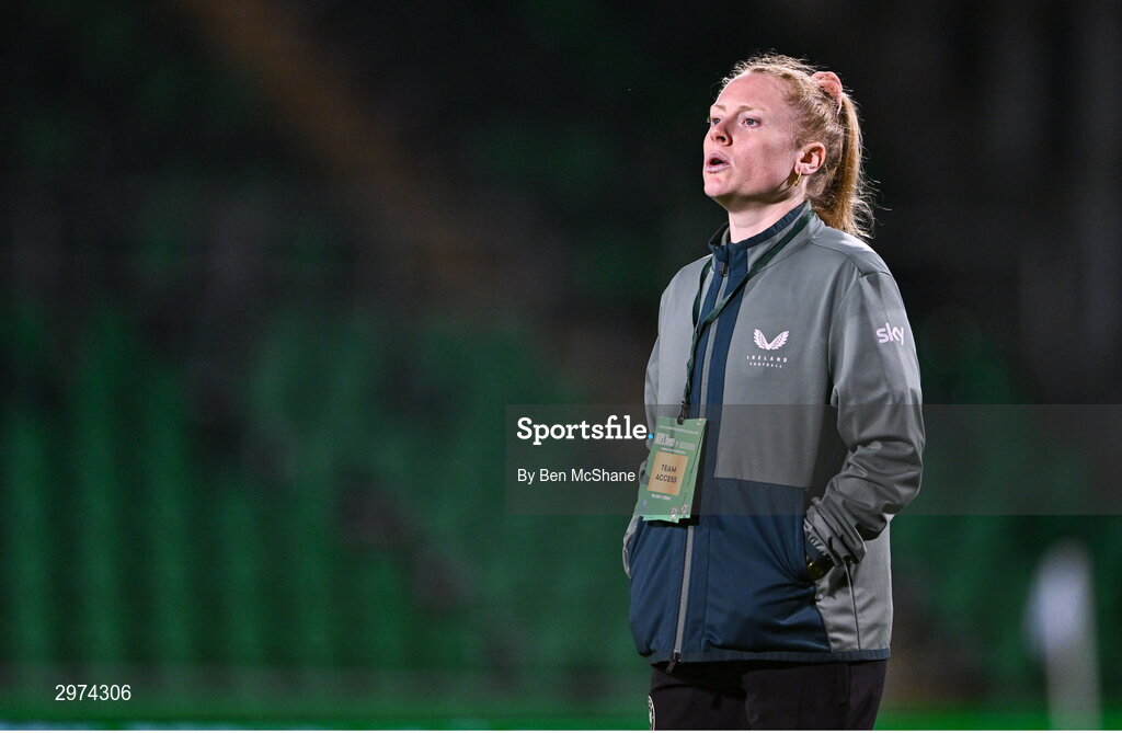 29 October 2024; Amber Barrett of Republic of Ireland walks the pitch before the UEFA Women's EURO 2025 Play-Off Round 1 second leg match between Republic of Ireland and Georgia at Tallaght Stadium in Dublin. Photo by Ben McShane/Sportsfile