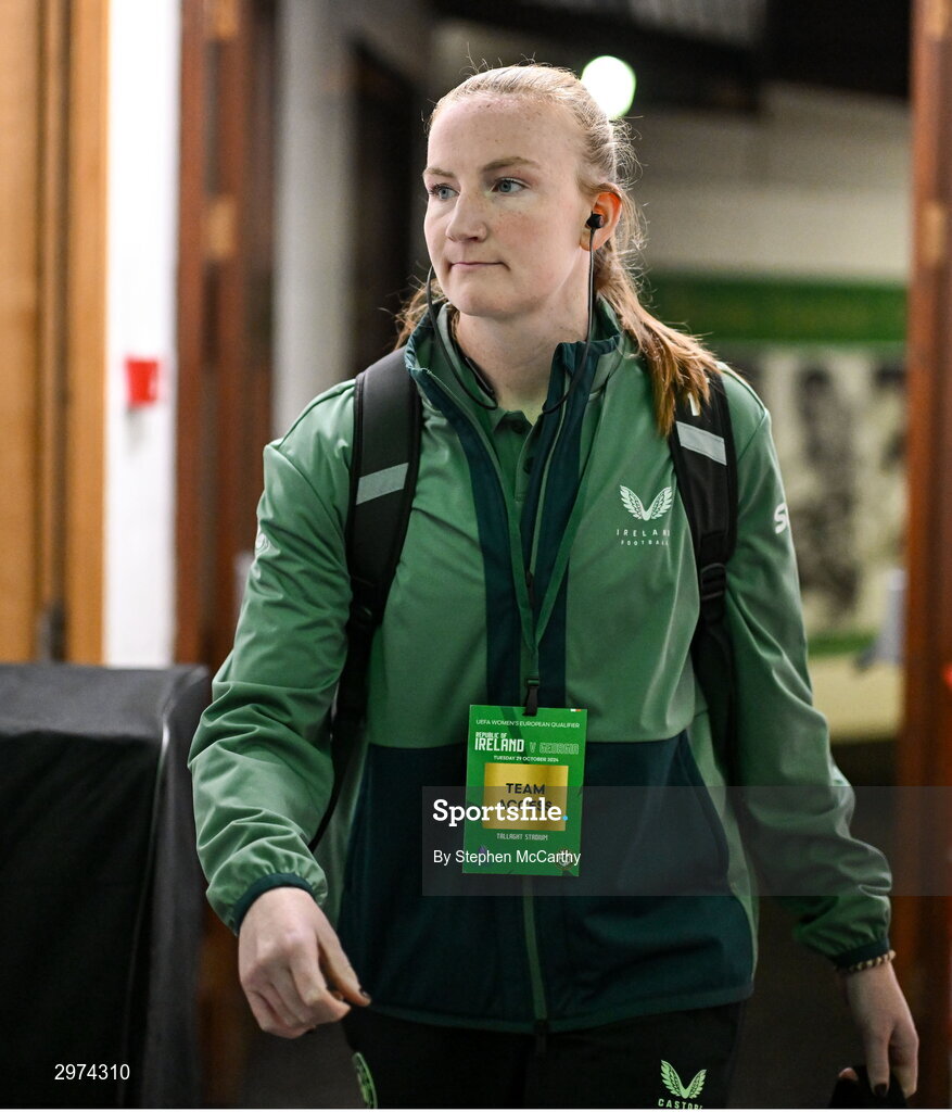 29 October 2024; Republic of Ireland goalkeeper Courtney Brosnan arrives before the UEFA Women's EURO 2025 Play-Off Round 1 second leg match between Republic of Ireland and Georgia at Tallaght Stadium in Dublin. Photo by Stephen McCarthy/Sportsfile
