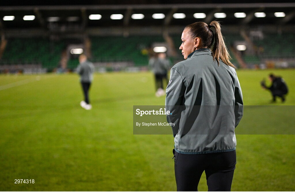 29 October 2024; Republic of Ireland captain Katie McCabe walks the pitch before the UEFA Women's EURO 2025 Play-Off Round 1 second leg match between Republic of Ireland and Georgia at Tallaght Stadium in Dublin. Photo by Stephen McCarthy/Sportsfile