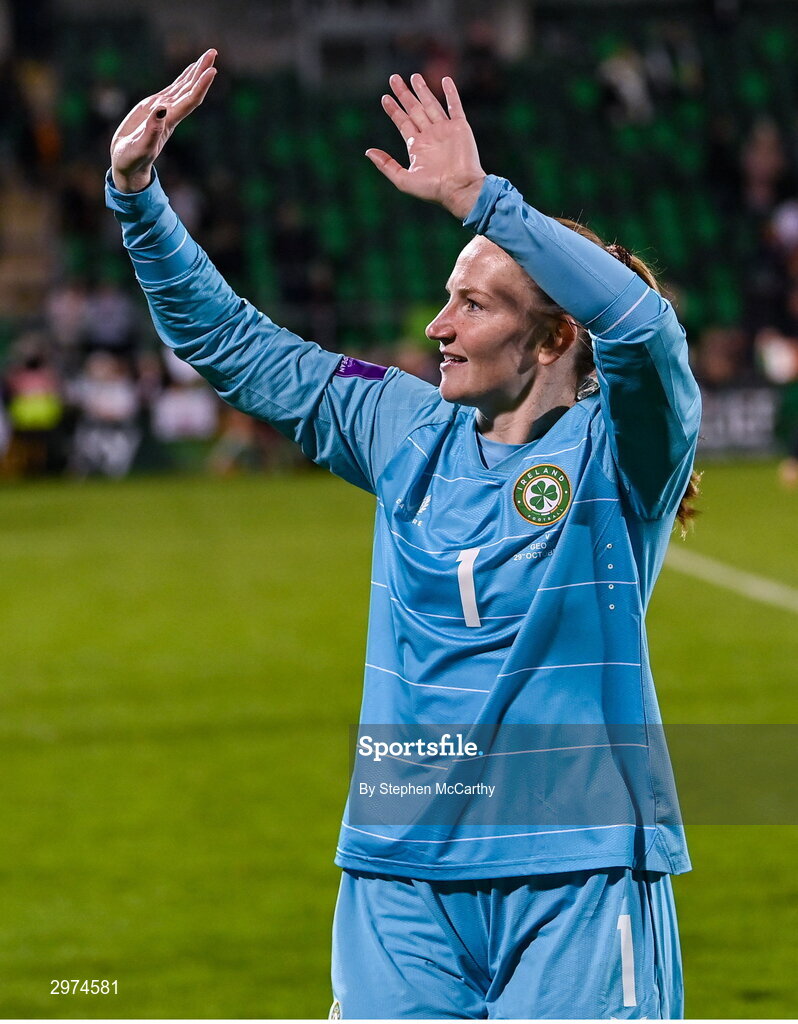29 October 2024; Republic of Ireland goalkeeper Courtney Brosnan after the UEFA Women's EURO 2025 Play-Off Round 1 second leg match between Republic of Ireland and Georgia at Tallaght Stadium in Dublin. Photo by Stephen McCarthy/Sportsfile