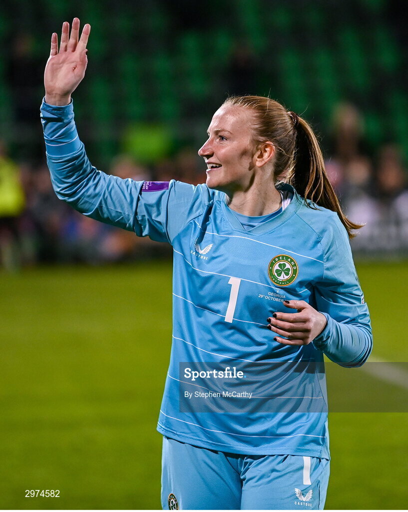29 October 2024; Republic of Ireland goalkeeper Courtney Brosnan after the UEFA Women's EURO 2025 Play-Off Round 1 second leg match between Republic of Ireland and Georgia at Tallaght Stadium in Dublin. Photo by Stephen McCarthy/Sportsfile
