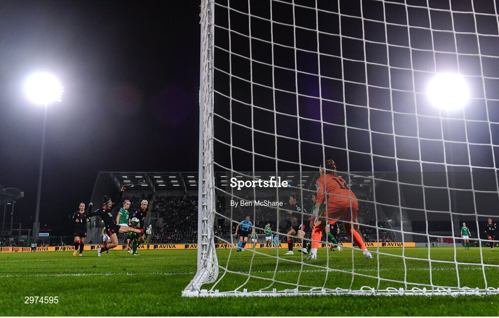 29 October 2024; Denise O'Sullivan of Republic of Ireland has a shot on goal during the UEFA Women's EURO 2025 Play-Off Round 1 second leg match between Republic of Ireland and Georgia at Tallaght Stadium in Dublin. Photo by Ben McShane/Sportsfile