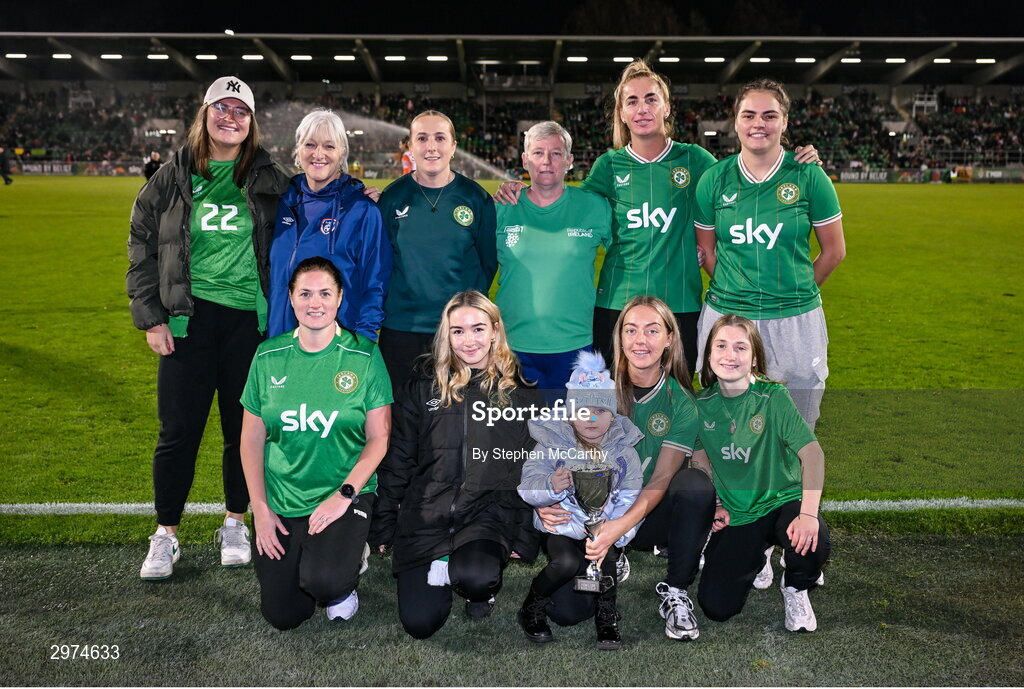 29 October 2024; The Republic of Ireland Women's Homeless World Cup team are introduced at half-time in the UEFA Women's EURO 2025 Play-Off Round 1 second leg match between Republic of Ireland and Georgia at Tallaght Stadium in Dublin. Photo by Stephen McCarthy/Sportsfile