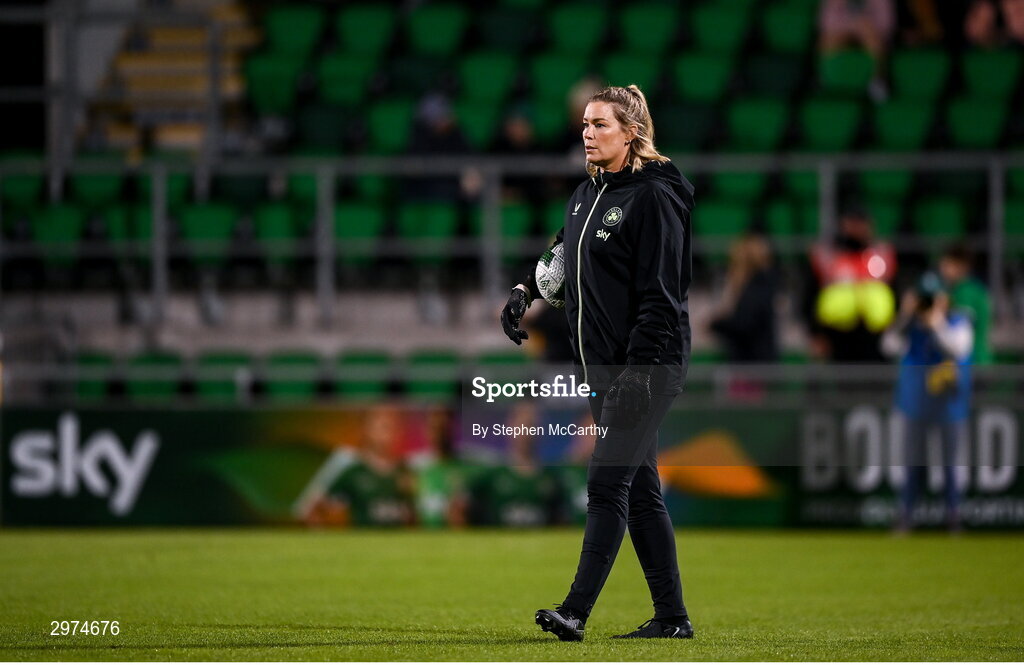 29 October 2024; Republic of Ireland assistant coach Emma Byrne before the UEFA Women's EURO 2025 Play-Off Round 1 second leg match between Republic of Ireland and Georgia at Tallaght Stadium in Dublin. Photo by Stephen McCarthy/Sportsfile