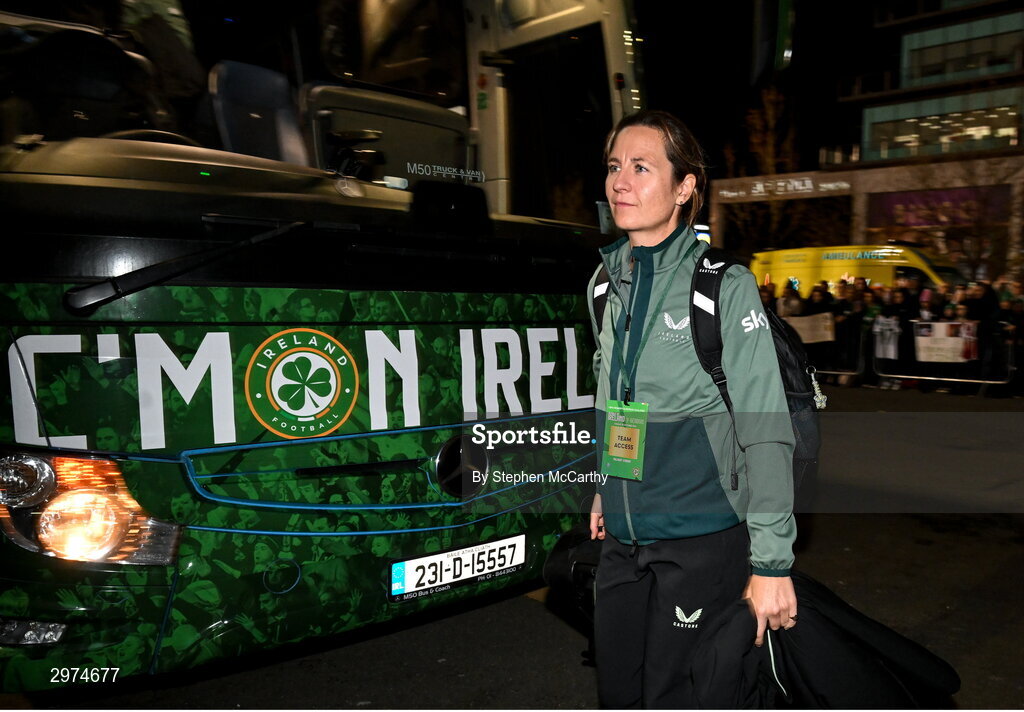 29 October 2024; Republic of Ireland performance psychologist Sarah Murray arrives for the UEFA Women's EURO 2025 Play-Off Round 1 second leg match between Republic of Ireland and Georgia at Tallaght Stadium in Dublin. Photo by Stephen McCarthy/Sportsfile