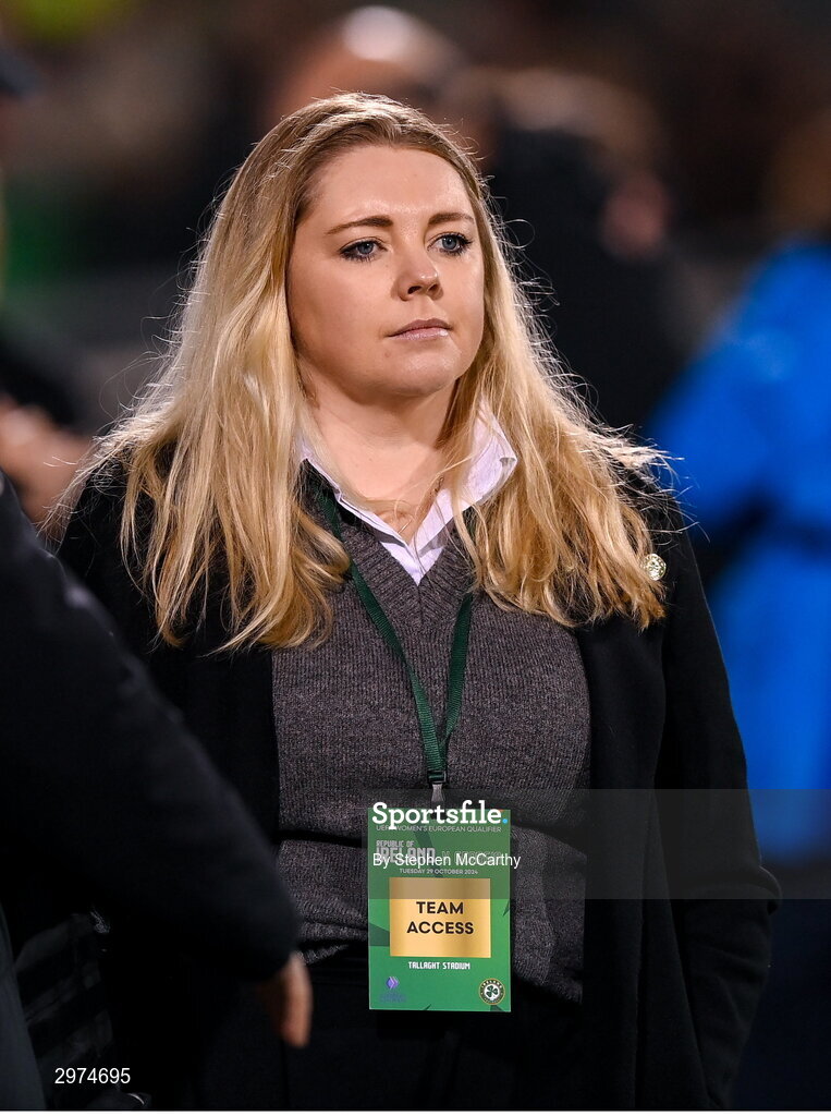 29 October 2024; Republic of Ireland's team operations manager Jennifer Willmott before the UEFA Women's EURO 2025 Play-Off Round 1 second leg match between Republic of Ireland and Georgia at Tallaght Stadium in Dublin. Photo by Stephen McCarthy/Sportsfile