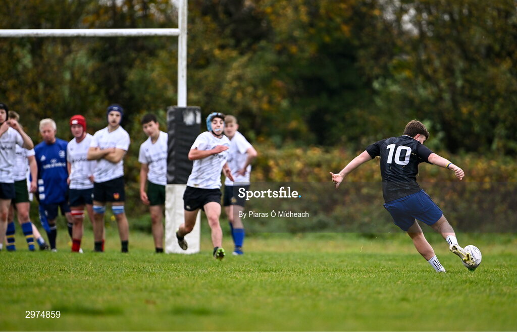 30 October 2024; Nicky Sheridan of Metro takes a conversion during the BearingPoint Shane Horgan Cup Round 2 match between Metro and Midlands at Cill Dara RFC in Kildare. Photo by Piaras Ó Mídheach/Sportsfile