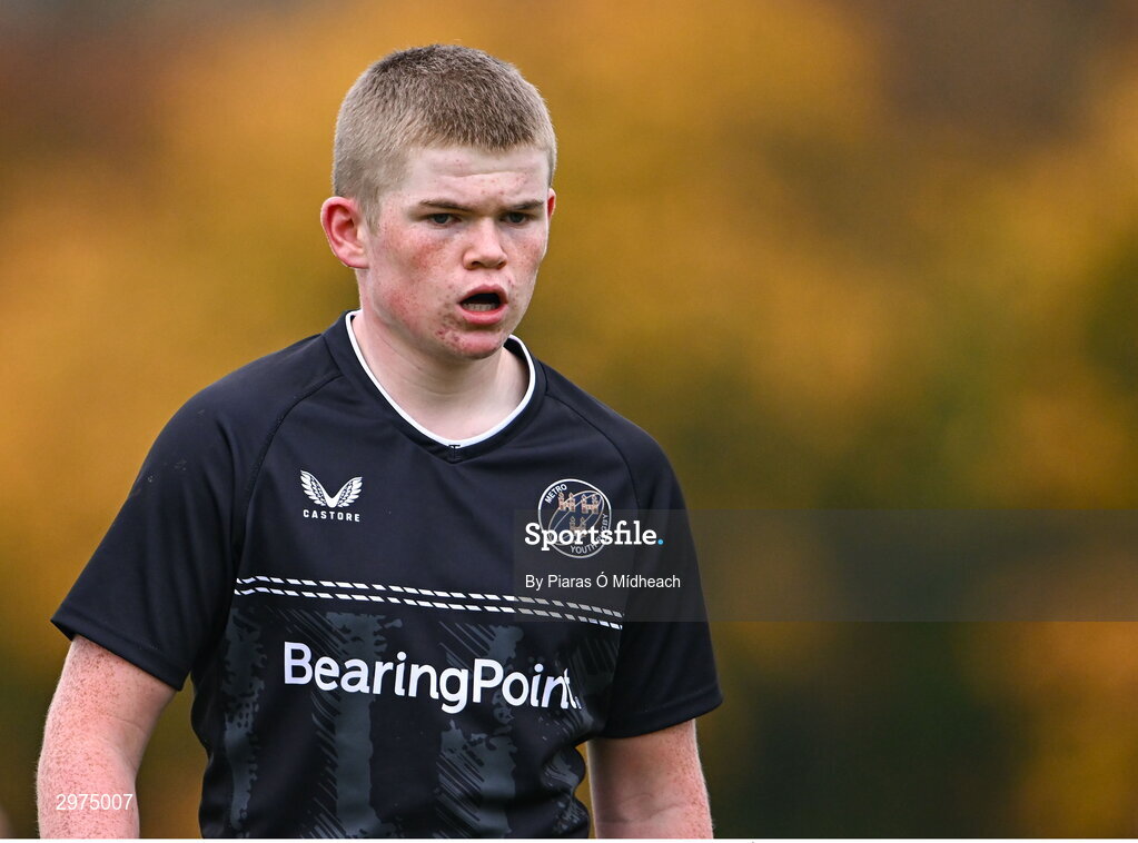 30 October 2024; Shane Fox of Metro during the BearingPoint Shane Horgan Cup Round 2 match between Metro and Midlands at Cill Dara RFC in Kildare. Photo by Piaras Ó Mídheach/Sportsfile