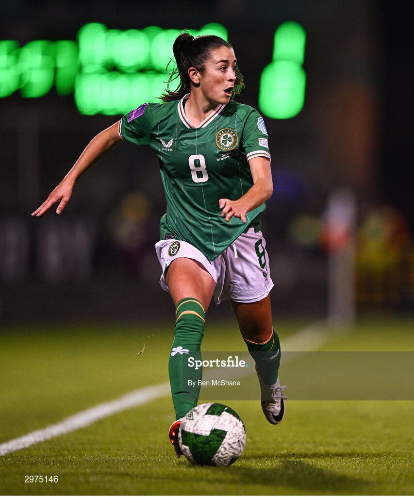 29 October 2024; Marissa Sheva of Republic of Ireland during the UEFA Women's EURO 2025 Play-Off Round 1 second leg match between Republic of Ireland and Georgia at Tallaght Stadium in Dublin. Photo by Ben McShane/Sportsfile