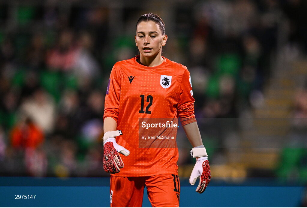 29 October 2024; Georgia goalkeeper Tatia Gabunia during the UEFA Women's EURO 2025 Play-Off Round 1 second leg match between Republic of Ireland and Georgia at Tallaght Stadium in Dublin. Photo by Ben McShane/Sportsfile