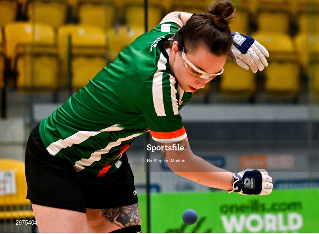 31 October 2024; Eilise McCrory of Breacach, Tyrone, in action in the Open Ladies quarter final during day six of the O'Neills.com World 4-Wall Championships at Croke Park in Dublin. Photo by Stephen Marken/Sportsfile