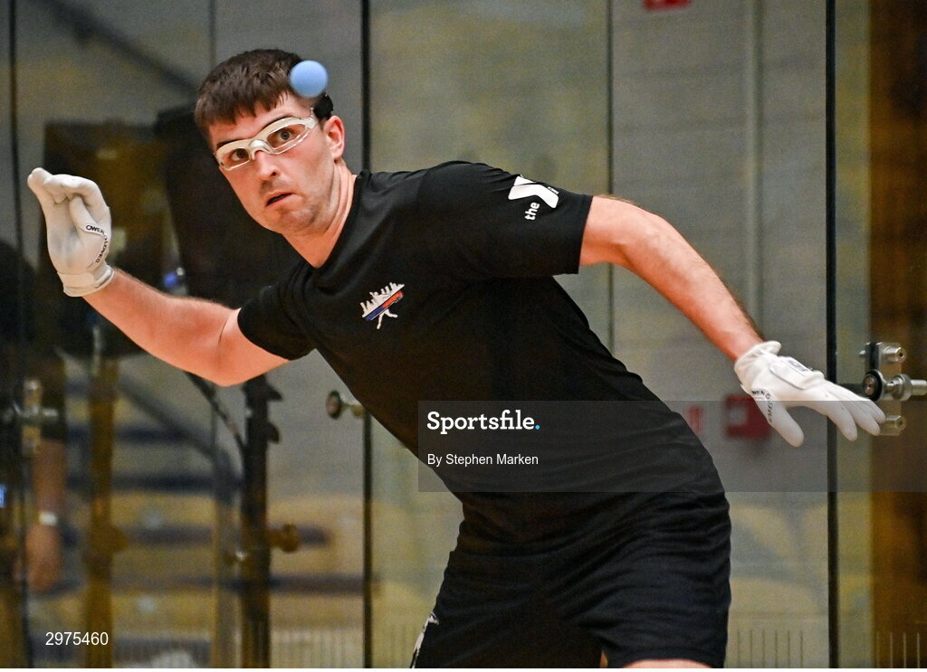 31 October 2024; Martin Mulkerrins of Moycullen, Galway, in action in the Open Men's quarter final during day six of the O'Neills.com World 4-Wall Championships at Croke Park in Dublin. Photo by Stephen Marken/Sportsfile