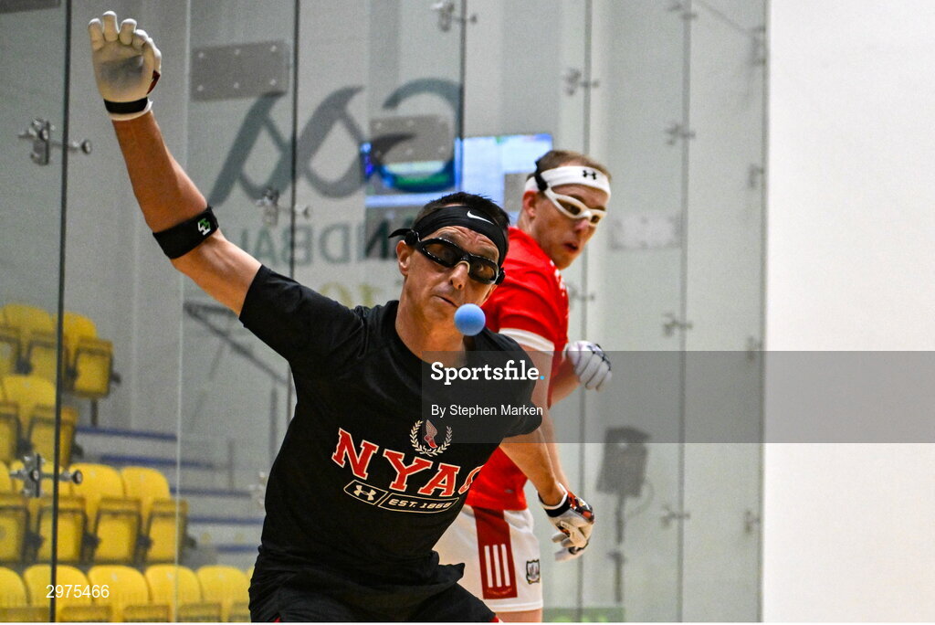 31 October 2024; Paul Brady of Kingscourt, Cavan, in action against Daniel Relihan of Liscarroll, Cork, in the Open Men's quarter final during day six of the O'Neills.com World 4-Wall Championships at Croke Park in Dublin. Photo by Stephen Marken/Sportsfile