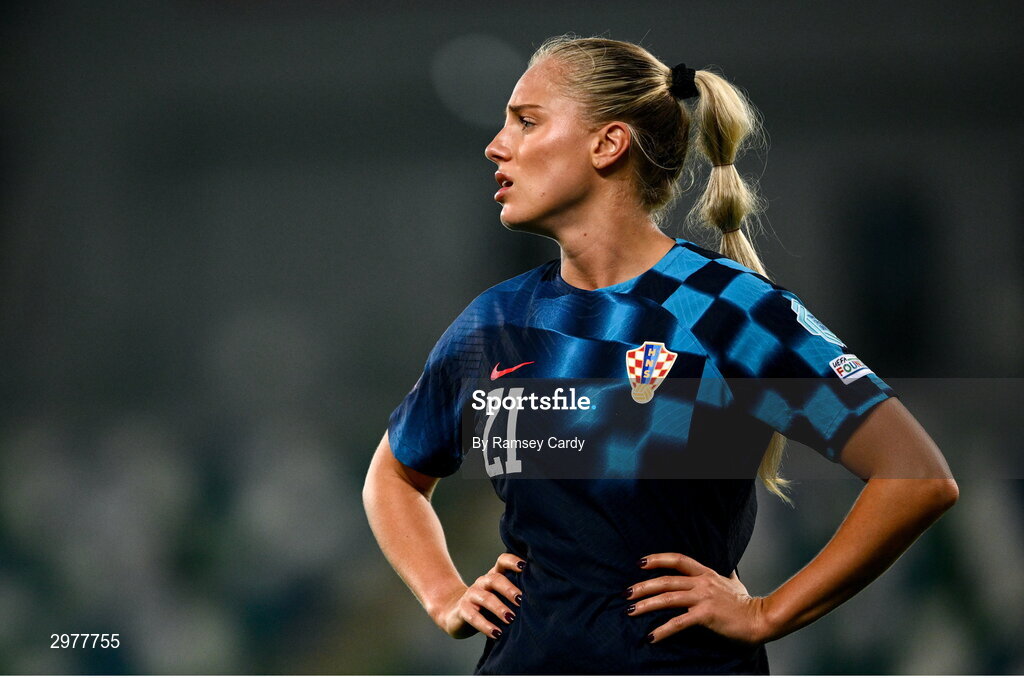29 October 2024; Ana Maria Markovic of Croatia during the UEFA Women's EURO 2025 Play-Off Round 1 Second Leg match between Northern Ireland and Croatia at the National Football Stadium in Windsor Park, Belfast. Photo by Ramsey Cardy/Sportsfile