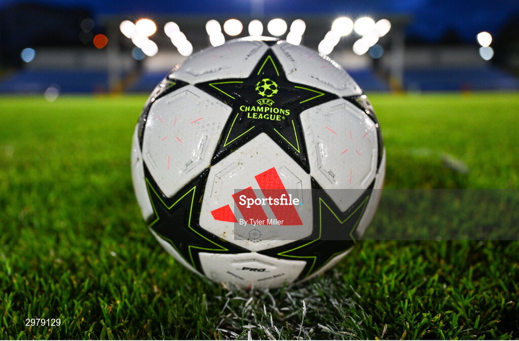 6 November 2024; A general view of the match ball before the UEFA Youth League second round 2nd leg match between UCD and 2 Korriku at UCD Bowl in Dublin. Photo by Tyler Miller/Sportsfile