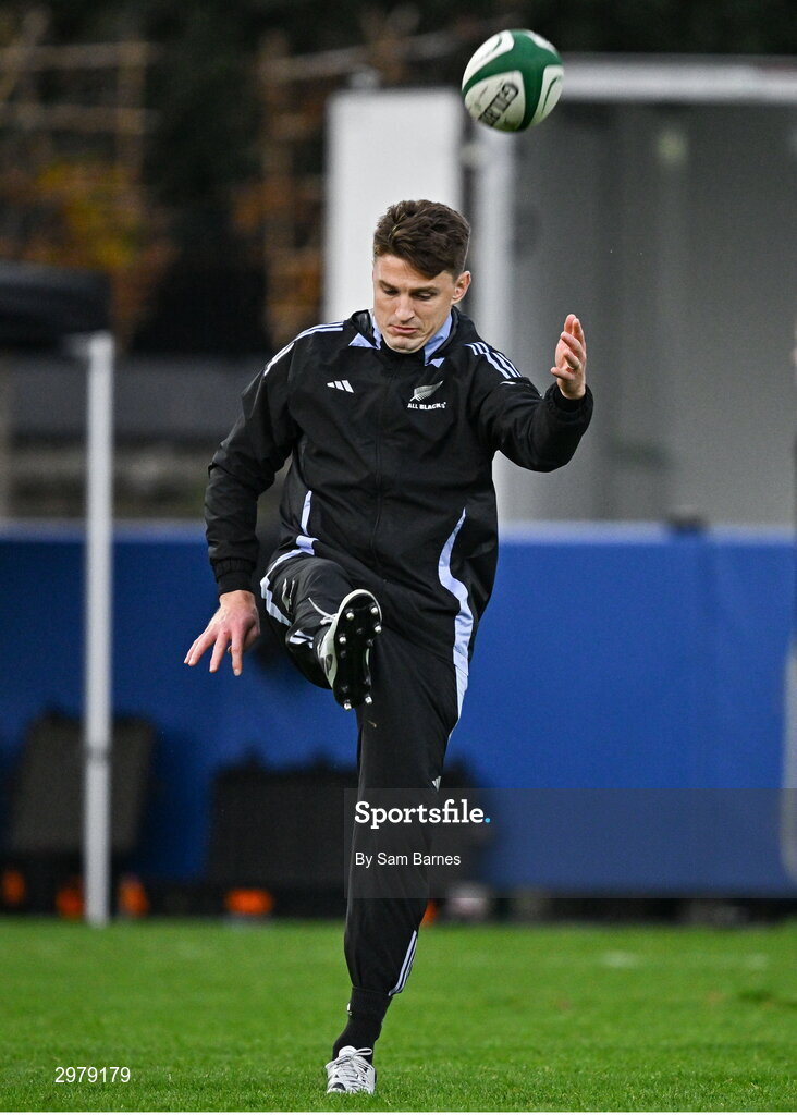 6 November 2024; Beauden Barrett during a New Zealand rugby squad training session at Wanderers Football Club in Dublin. Photo by Sam Barnes/Sportsfile
