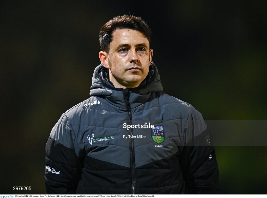 6 November 2024; UCD manager Shane Fox during the UEFA Youth League second round 2nd leg match between UCD and 2 Korriku at UCD Bowl in Dublin. Photo by Tyler Miller/Sportsfile