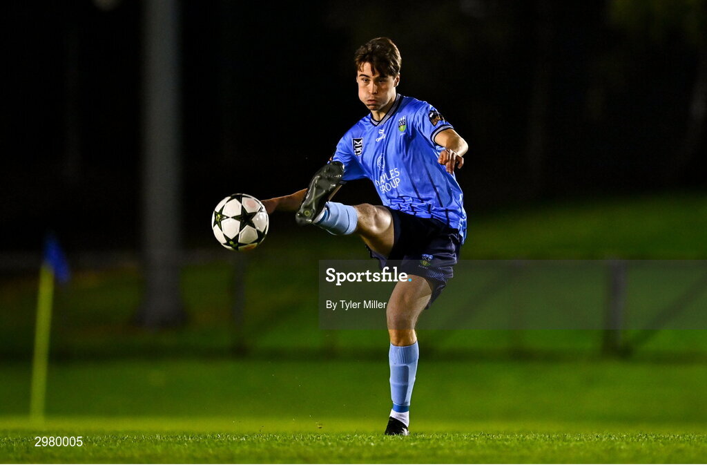 6 November 2024; Cathal McCarthy of UCD during the UEFA Youth League second round 2nd leg match between UCD and 2 Korriku at UCD Bowl in Dublin. Photo by Tyler Miller/Sportsfile