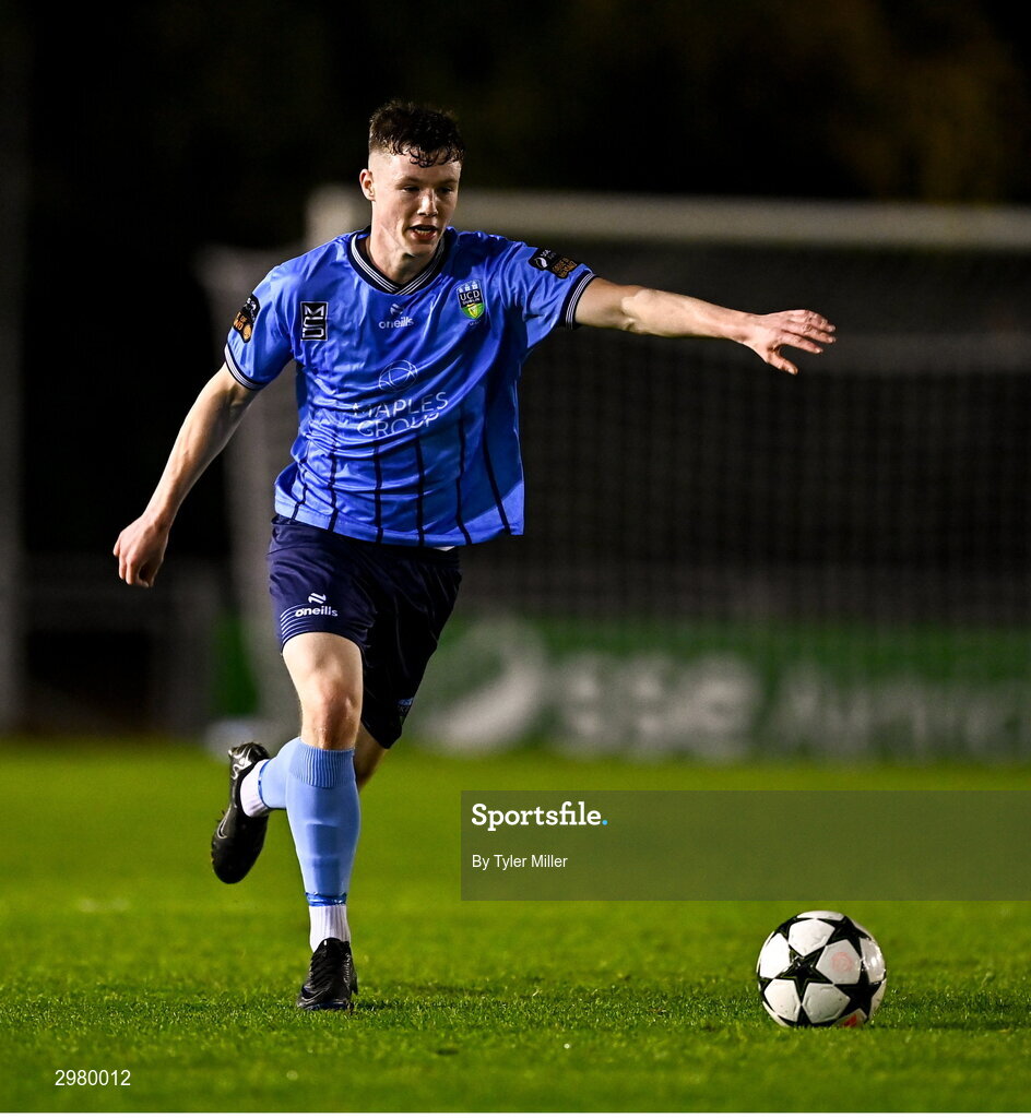 6 November 2024; Ethan Hall of UCD during the UEFA Youth League second round 2nd leg match between UCD and 2 Korriku at UCD Bowl in Dublin. Photo by Tyler Miller/Sportsfile