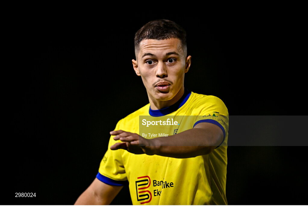 6 November 2024; Daris Gashi of 2 Korriku during the UEFA Youth League second round 2nd leg match between UCD and 2 Korriku at UCD Bowl in Dublin. Photo by Tyler Miller/Sportsfile