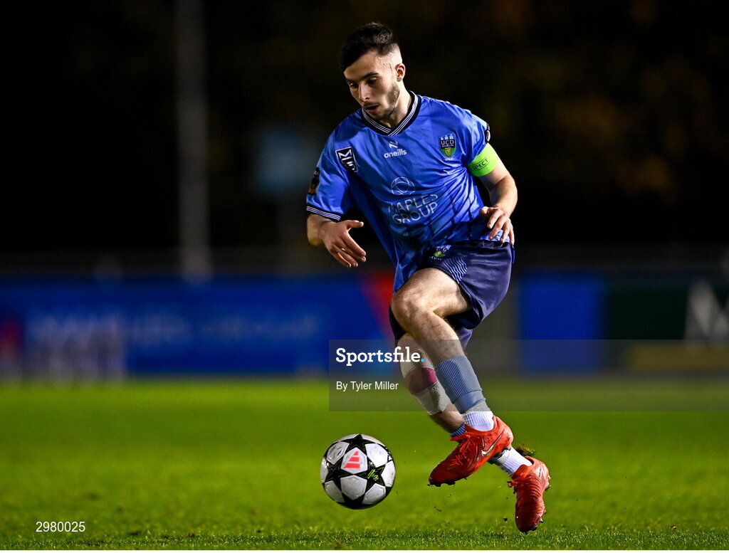 6 November 2024; Kyle Donoghue of UCD during the UEFA Youth League second round 2nd leg match between UCD and 2 Korriku at UCD Bowl in Dublin. Photo by Tyler Miller/Sportsfile