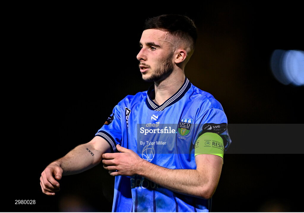 6 November 2024; Kyle Donoghue of UCD during the UEFA Youth League second round 2nd leg match between UCD and 2 Korriku at UCD Bowl in Dublin. Photo by Tyler Miller/Sportsfile