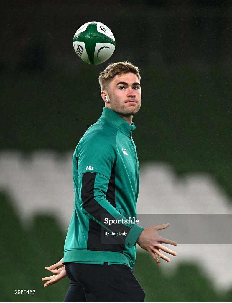 8 November 2024; Jack Crowley of Ireland before the Autumn Nations Series match between Ireland and New Zealand at the Aviva Stadium in Dublin. Photo by Seb Daly/Sportsfile