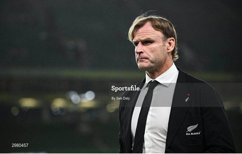 8 November 2024; New Zealand head coach Scott Robertson before the Autumn Nations Series match between Ireland and New Zealand at the Aviva Stadium in Dublin. Photo by Seb Daly/Sportsfile
