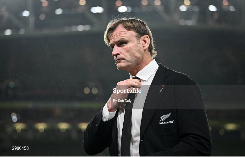 8 November 2024; New Zealand head coach Scott Robertson before the Autumn Nations Series match between Ireland and New Zealand at the Aviva Stadium in Dublin. Photo by Seb Daly/Sportsfile