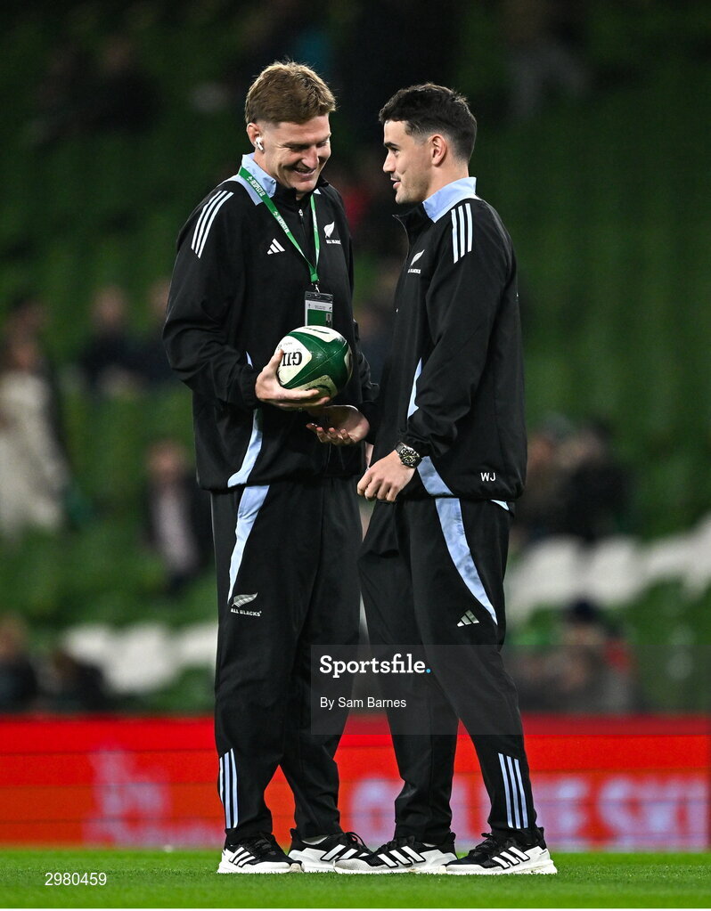 8 November 2024; New Zealand players Jordie Barrett, left, and Will Jordan before the Autumn Nations Series match between Ireland and New Zealand at the Aviva Stadium in Dublin. Photo by Sam Barnes/Sportsfile