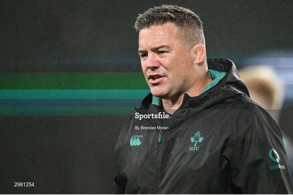 8 November 2024; Ireland national scrum coach John Fogarty before the Autumn Nations Series match between Ireland and New Zealand at the Aviva Stadium in Dublin. Photo by Brendan Moran/Sportsfile