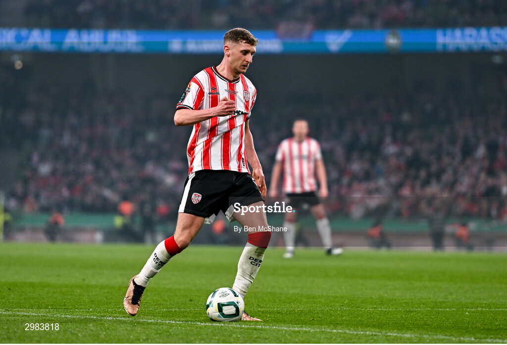 10 November 2024; Ronan Boyce of Derry City during the Sports Direct Men's FAI Cup Final match between Drogheda United and Derry City at the Aviva Stadium in Dublin. Photo by Ben McShane/Sportsfile