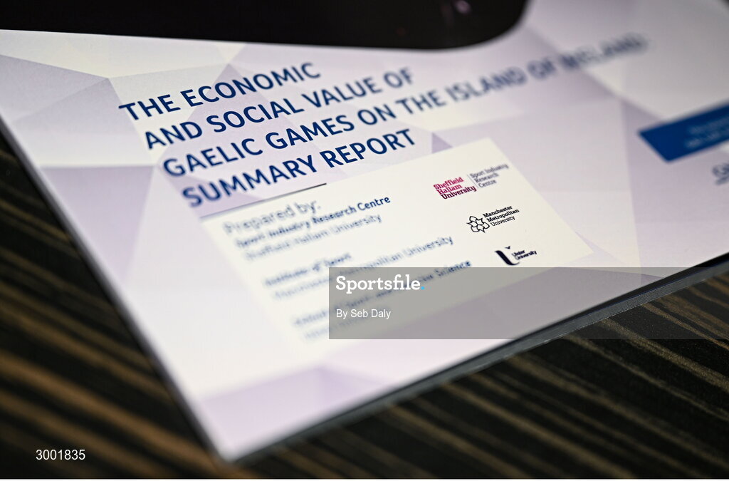 27 November 2024; A detailed view of the Economic Impact and Social Value report on Gaelic Games during its launch, at Croke Park in Dublin. Photo by Seb Daly/Sportsfile