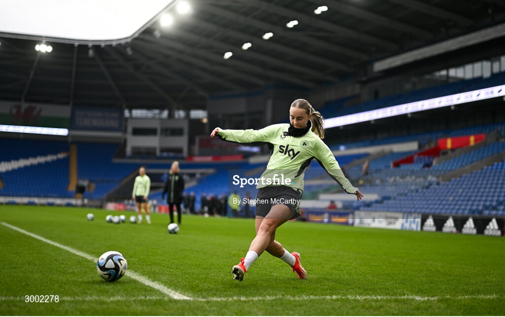 28 November 2024; Izzy Atkinson during a Republic of Ireland women training session at Cardiff City Stadium in Wales. Photo by Stephen McCarthy/Sportsfile