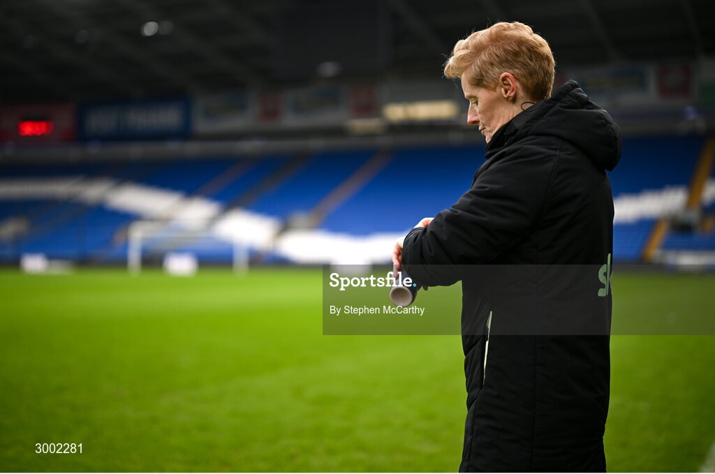 28 November 2024; Head coach Eileen Gleeson during a Republic of Ireland women training session at Cardiff City Stadium in Wales. Photo by Stephen McCarthy/Sportsfile