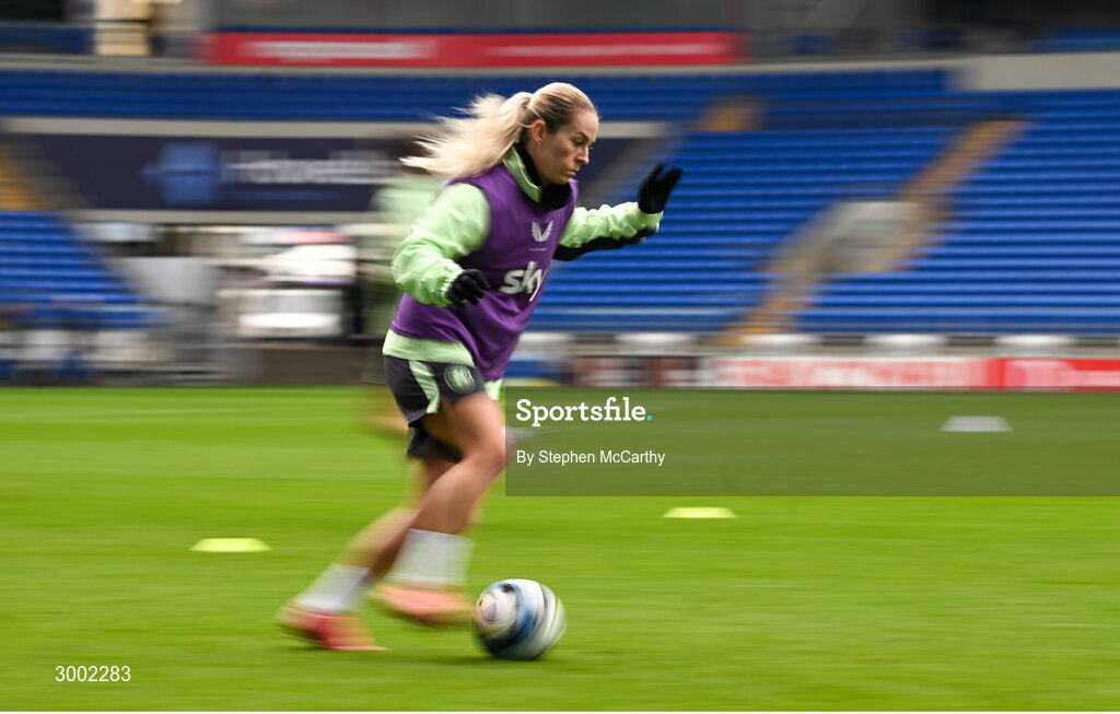 28 November 2024; Lily Agg during a Republic of Ireland women training session at Cardiff City Stadium in Wales. Photo by Stephen McCarthy/Sportsfile