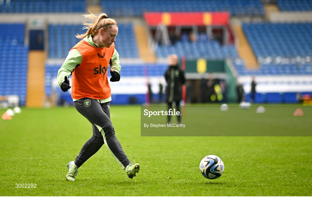 28 November 2024; Amber Barrett during a Republic of Ireland women training session at Cardiff City Stadium in Wales. Photo by Stephen McCarthy/Sportsfile