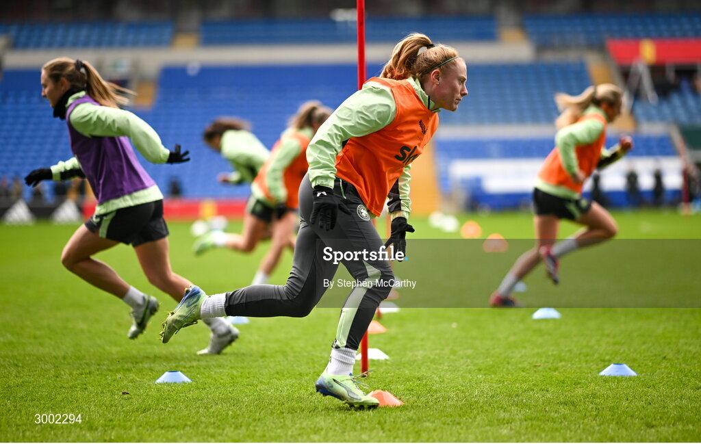 28 November 2024; Amber Barrett during a Republic of Ireland women training session at Cardiff City Stadium in Wales. Photo by Stephen McCarthy/Sportsfile