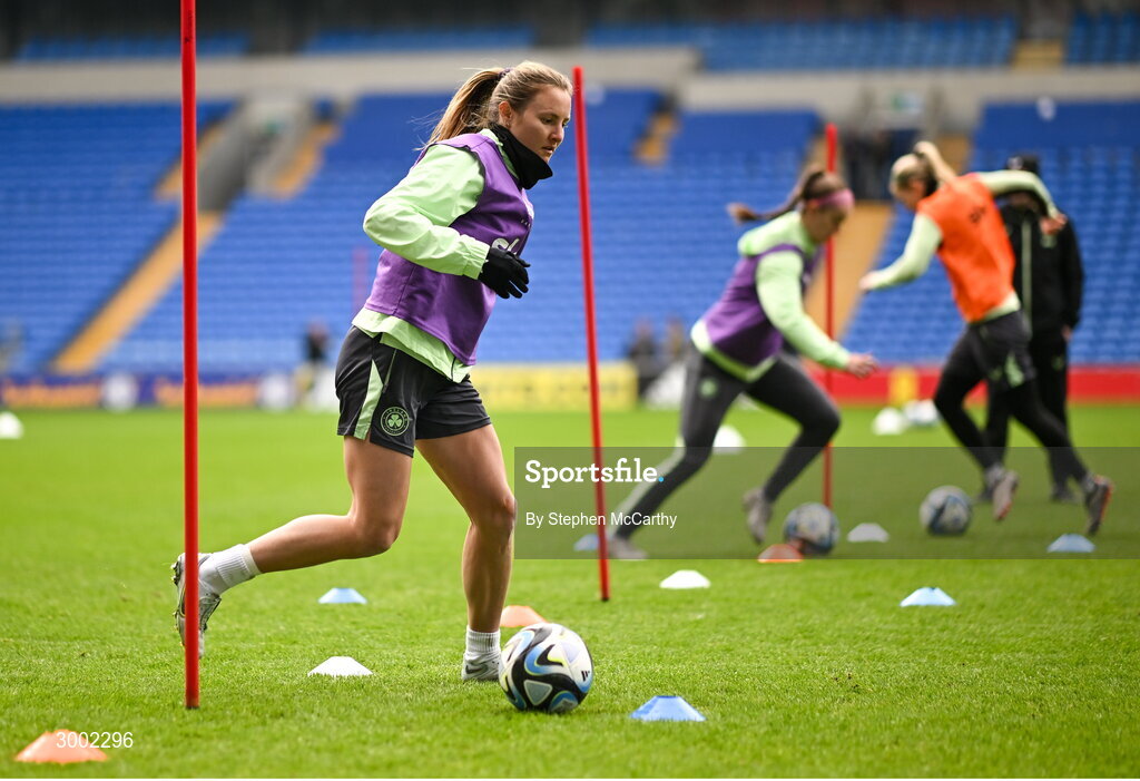 28 November 2024; Kyra Carusa during a Republic of Ireland women training session at Cardiff City Stadium in Wales. Photo by Stephen McCarthy/Sportsfile