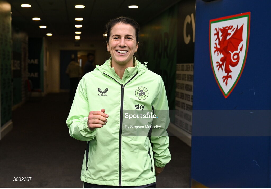 28 November 2024; Niamh Fahey during a Republic of Ireland women training session at Cardiff City Stadium in Wales. Photo by Stephen McCarthy/Sportsfile