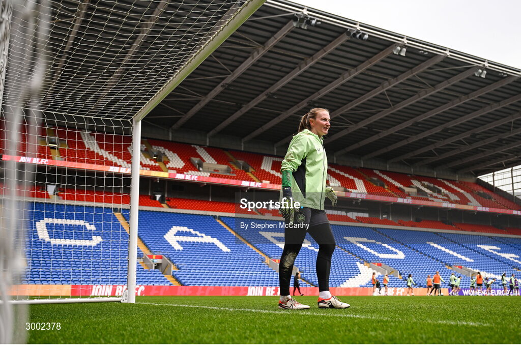 28 November 2024; Goalkeeper Courtney Brosnan during a Republic of Ireland women training session at Cardiff City Stadium in Wales. Photo by Stephen McCarthy/Sportsfile