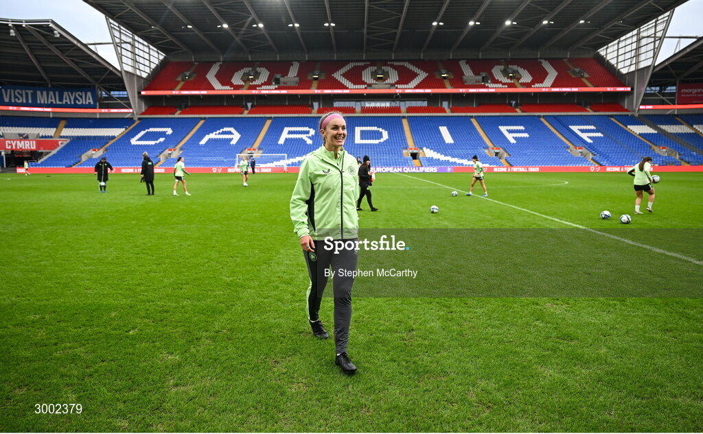 28 November 2024; Caitlin Hayes during a Republic of Ireland women training session at Cardiff City Stadium in Wales. Photo by Stephen McCarthy/Sportsfile