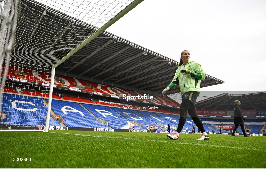 28 November 2024; Goalkeeper Courtney Brosnan during a Republic of Ireland women training session at Cardiff City Stadium in Wales. Photo by Stephen McCarthy/Sportsfile
