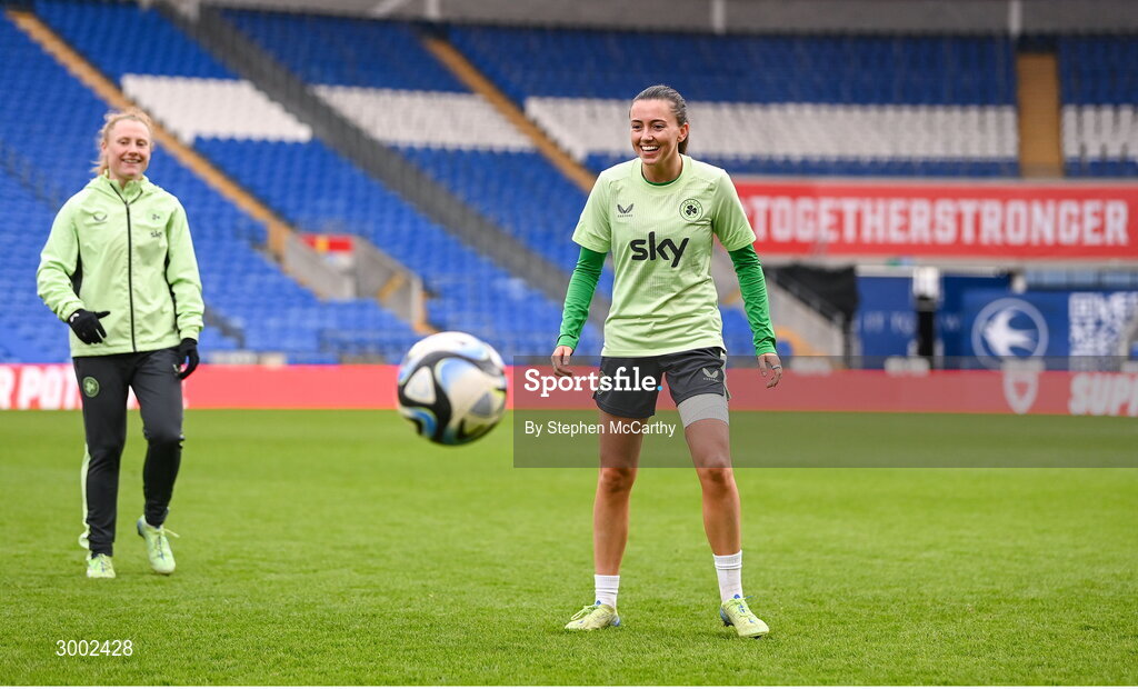 28 November 2024; Abbie Larkin during a Republic of Ireland women training session at Cardiff City Stadium in Wales. Photo by Stephen McCarthy/Sportsfile