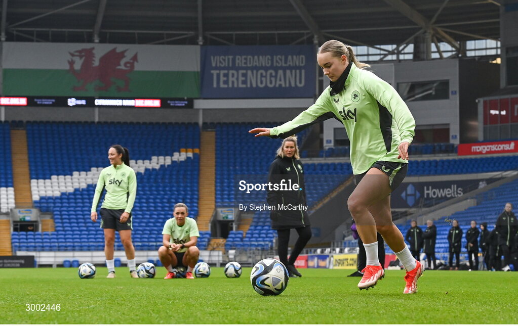 28 November 2024; Izzy Atkinson during a Republic of Ireland women training session at Cardiff City Stadium in Wales. Photo by Stephen McCarthy/Sportsfile