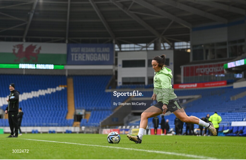 28 November 2024; Megan Campbell during a Republic of Ireland women training session at Cardiff City Stadium in Wales. Photo by Stephen McCarthy/Sportsfile