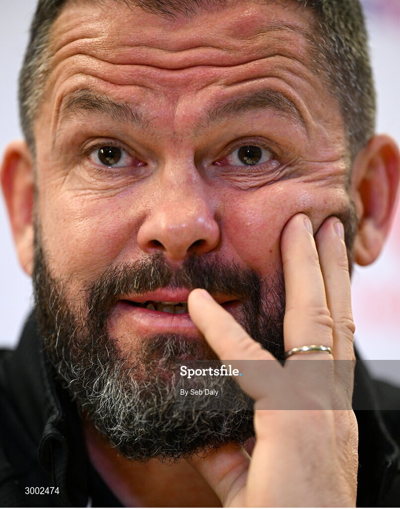 28 November 2024; Head coach Andy Farrell during an Ireland Rugby media conference at the Aviva Stadium in Dublin. Photo by Seb Daly/Sportsfile