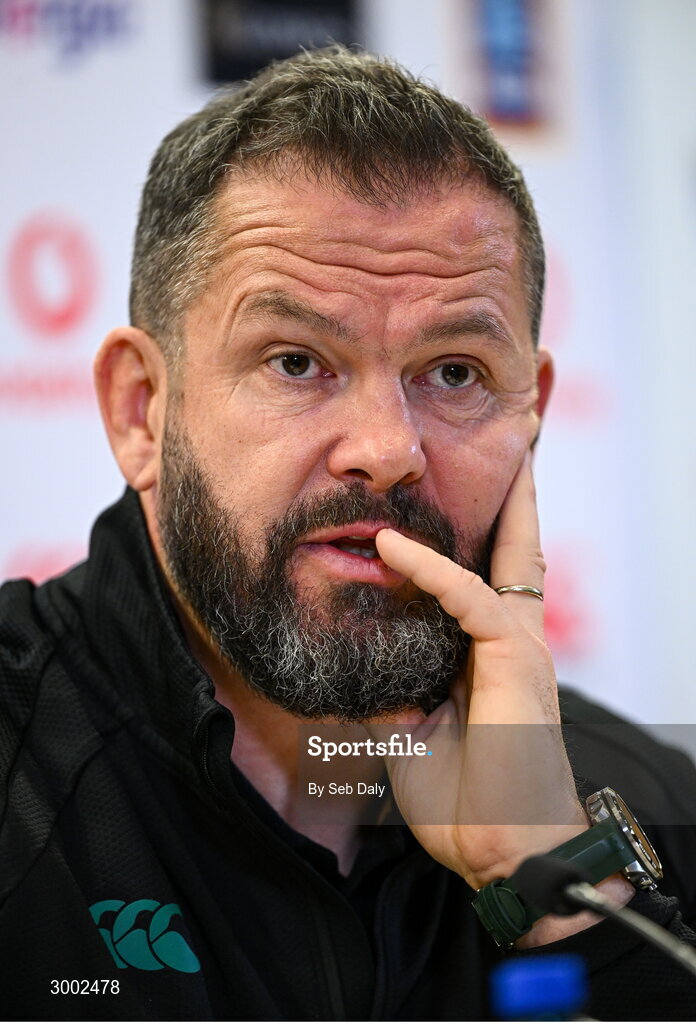 28 November 2024; Head coach Andy Farrell during an Ireland Rugby media conference at the Aviva Stadium in Dublin. Photo by Seb Daly/Sportsfile