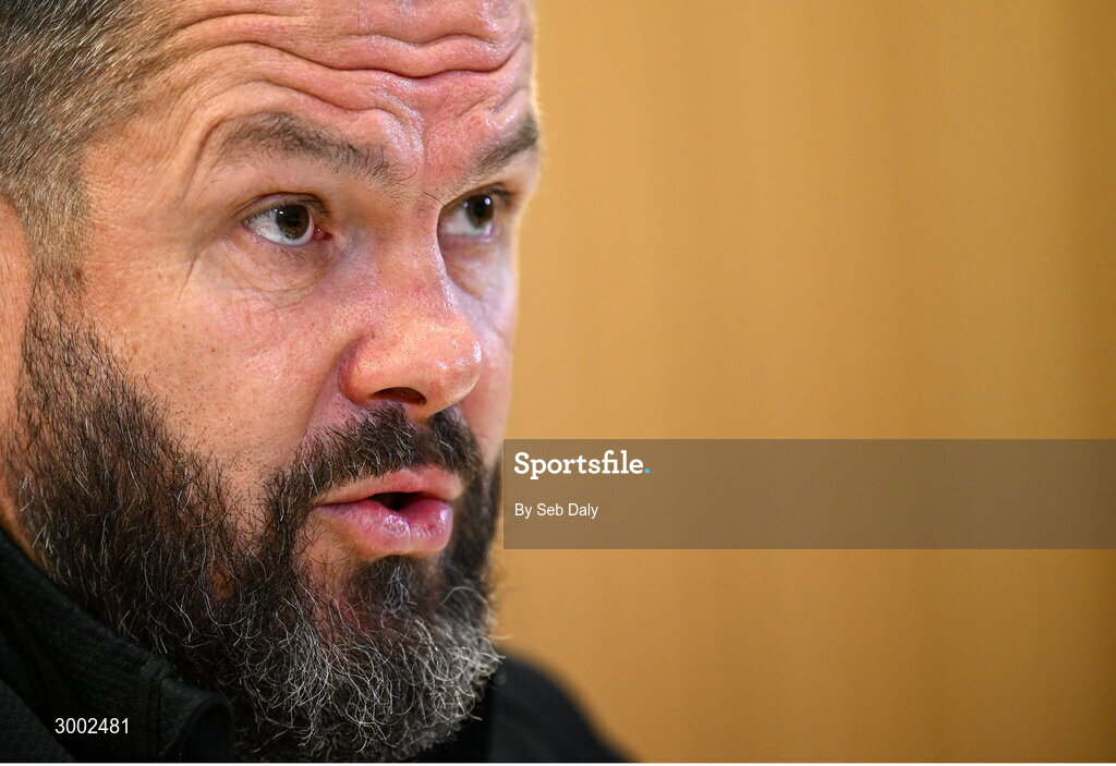 28 November 2024; Head coach Andy Farrell during an Ireland Rugby media conference at the Aviva Stadium in Dublin. Photo by Seb Daly/Sportsfile