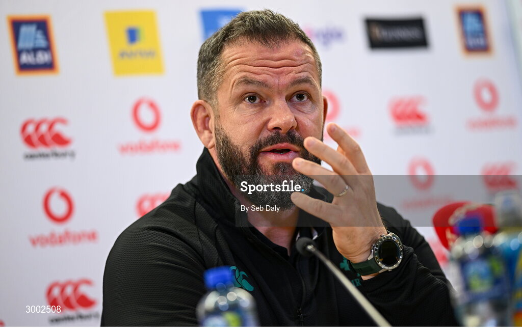 28 November 2024; Head coach Andy Farrell during an Ireland Rugby media conference at the Aviva Stadium in Dublin. Photo by Seb Daly/Sportsfile